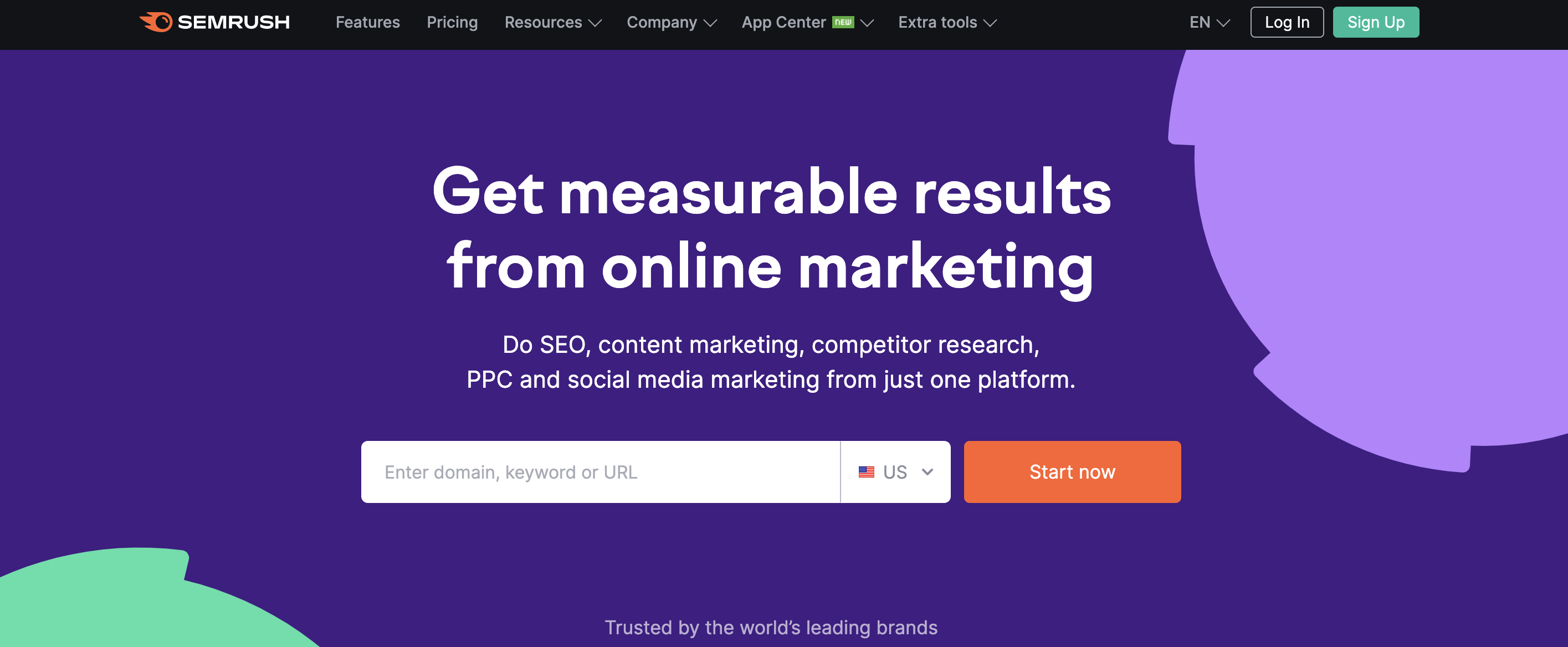 Semrush est une suite d'outils tout-en-un permettant d'améliorer la visibilité de votre site sur les moteurs de recherche. Il propose des outils de référencement tels que la recherche de mots clés, y compris des audits pour votre contenu, les possibilités de backlinking et une analyse approfondie de vos concurrents. Les données fournies par SEMrush vous aident à créer du contenu qui sera mieux positionné sur les pages de résultats des moteurs de recherche et touchera un public beaucoup plus large.