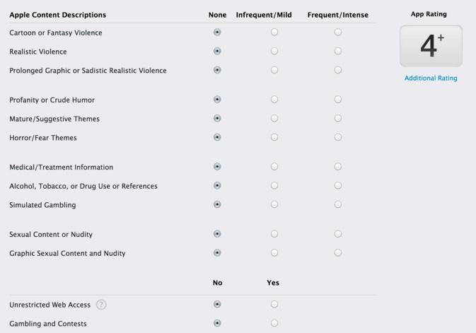 D'ailleurs, si vous indiquez que votre application n'utilise pas l'IDFA quand en réalité elle le fait, votre application recevra le statut "Invalid Binary" et sera rejetée. On vous demandera également si votre application affiche du contenu des sites tiers, et cela comprend même un simple lien vers un autre site web. Nous vous recommandons donc de répondre systématiquement "oui" à cette question.
