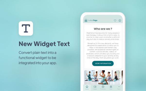 Vous avez été nombreux à nous demander la possibilité d'ajouter du texte libre sur les page Home de vos apps. C'est désormais possible avec le tout nouveau widget Texte ! Disponible pour les apps de eCommerce et de contenu, il vous permet d'ajouter du texte librement sur la page d'accueil de votre application. Il peut paraître tout simple mais ne négligez pas le potentiel de ce widget qui peut avoir mille et unes utilisations ! Que ce soit pour vous présenter, introduire une section de votre app, donner des instructions ou tout simplement pour des raisons esthétiques il vous rendra plus d'un service. Le widget Texte vous permet d'ajouter un titre, un corps de texte et même un bouton de redirection. Depuis le panel du back office vous pouvez définir l'alignement de votre texte, la couleur, la taille et la police du titre et du corps de texte, la couleur des liens et bien sûr paramétrer votre bouton.