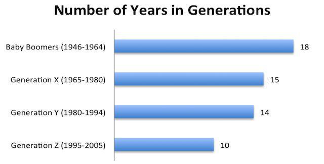 Ce graphique publié par Mashable est un bon exemple de la difficulté grandissante à laquelle sont confrontés les marqueteurs pour segmenter la population en grands groupes: les groupes générationnels ont été affinés avec le temps. Les gens se reconnaissent dans de si petits segments qu'une stratégie globale n'aurait plus aucune chance de fonctionner.