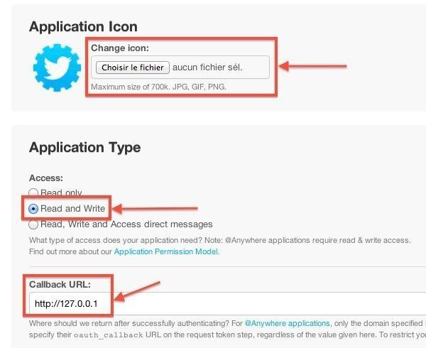 Si ce n'est pas déjà fait, vous devriez uploader une icône pour votre appli Twitter. Ce sera plus joli pour vos utilisateurs.