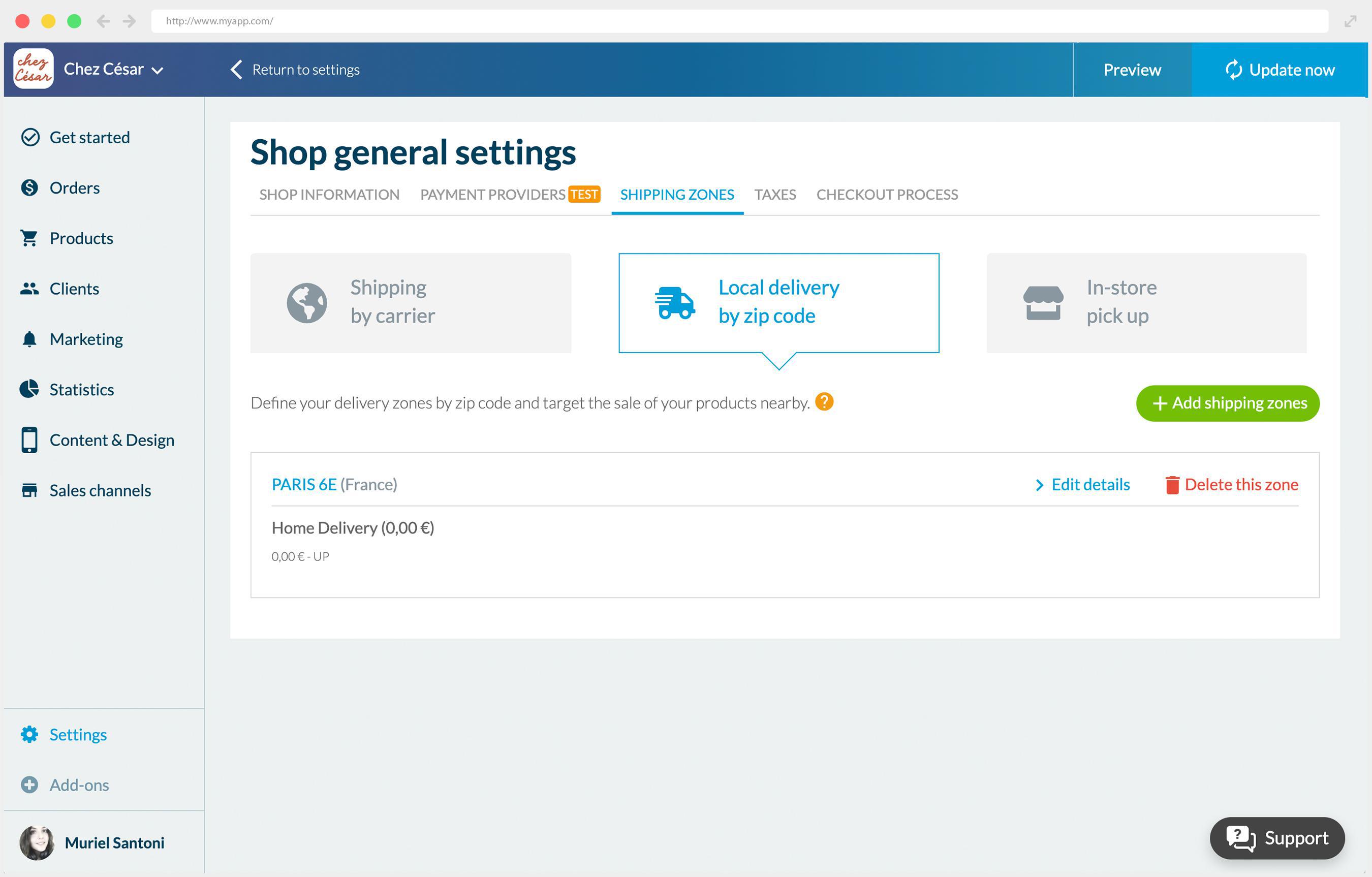 Dans le cadre d'une épicerie de quartier, proposer la livraison à domicile est apparue comme une évidence. Le gérant de Chez César a préféré limité son service de livraison à un seul arrondissement parisien, afin de pouvoir assurer son service auprès de ses clients fidèles et de ne pas avoir à perdre trop de temps en livraison. La livraison locale a donc été mise en place dans l'app, et lui permet de proposer un service sûr et rapide à ses clients. Avec ce service de livraison locale s'appliquant aux alentours de l'épicerie, les clients du 6ème arrondissement de Paris pourront donc sélectionner leurs articles rapidement grâce au bouton d'achat rapide , payer leurs courses en ligne, puis être livrés à domicile, pendant le créneau horaire de leur choix.