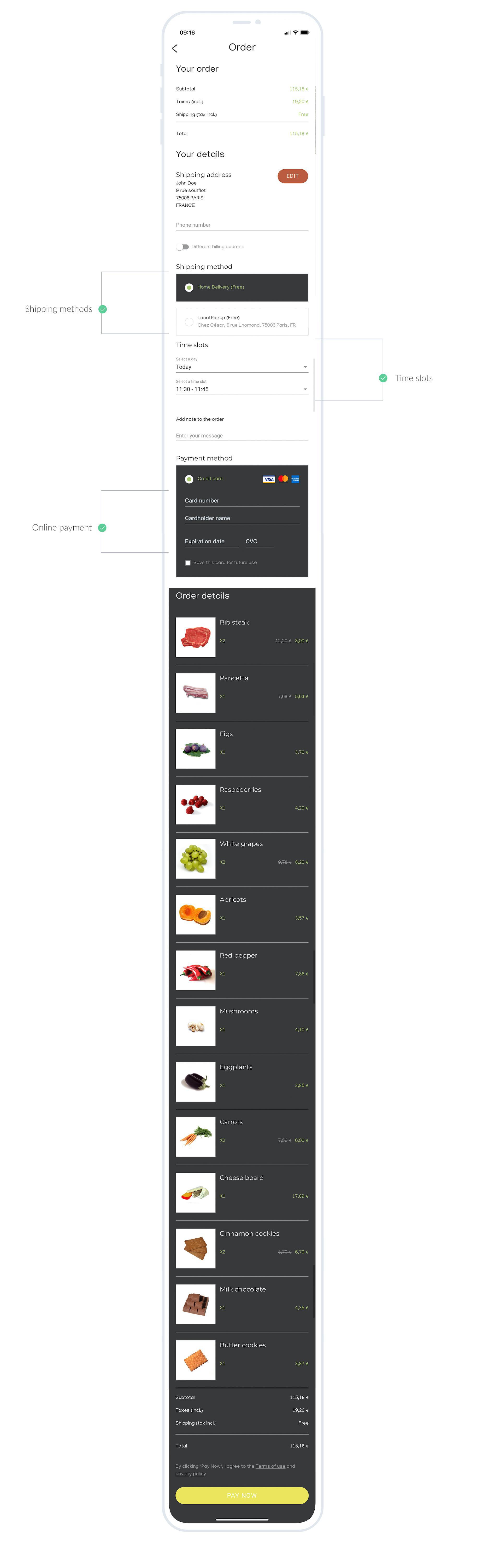 Voici à quoi ressemble un écran de checkout du côté des clients de Chez César: