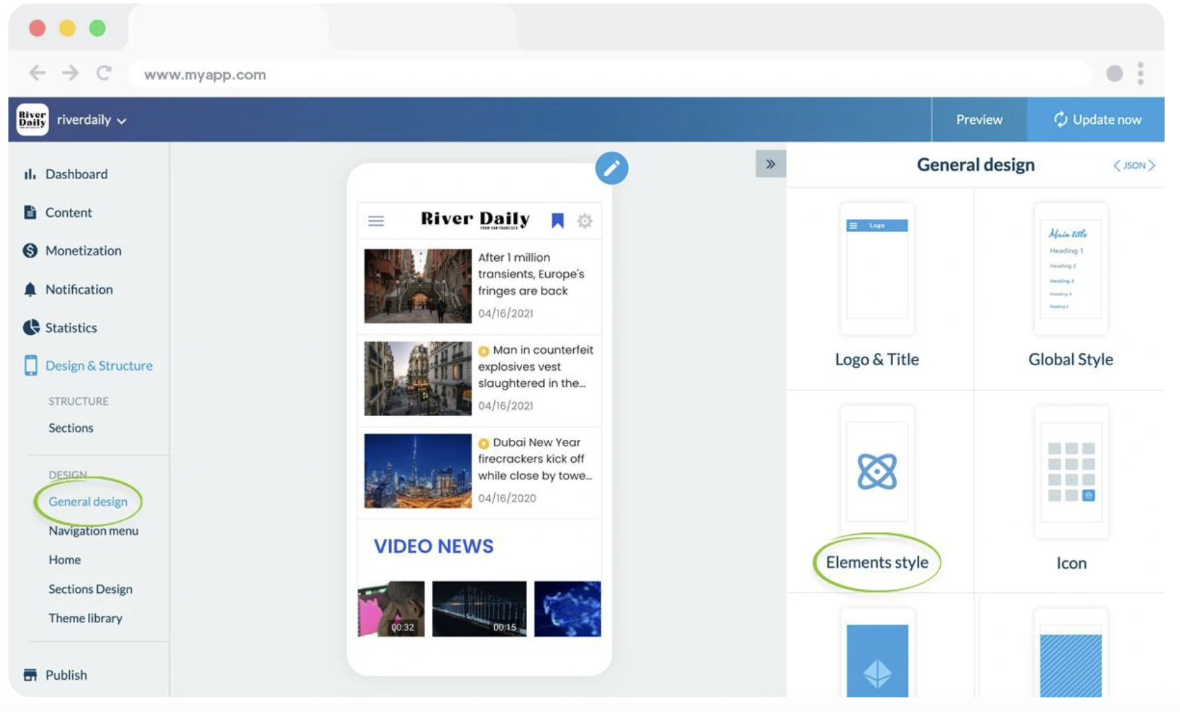 Le monde des apps est un monde créatif. Si vous ne voulez pas passer inaperçu, mieux vaut trouver un app builder avec un large choix de templates de qualité, un design soigné et, par dessus tout, la possibilité de customiser votre app dans ses moindres recoins. Votre app doit pouvoir représenter votre style, votre identité graphique, surtout si vous avez déjà une marque ou une présence desktop à votre actif.