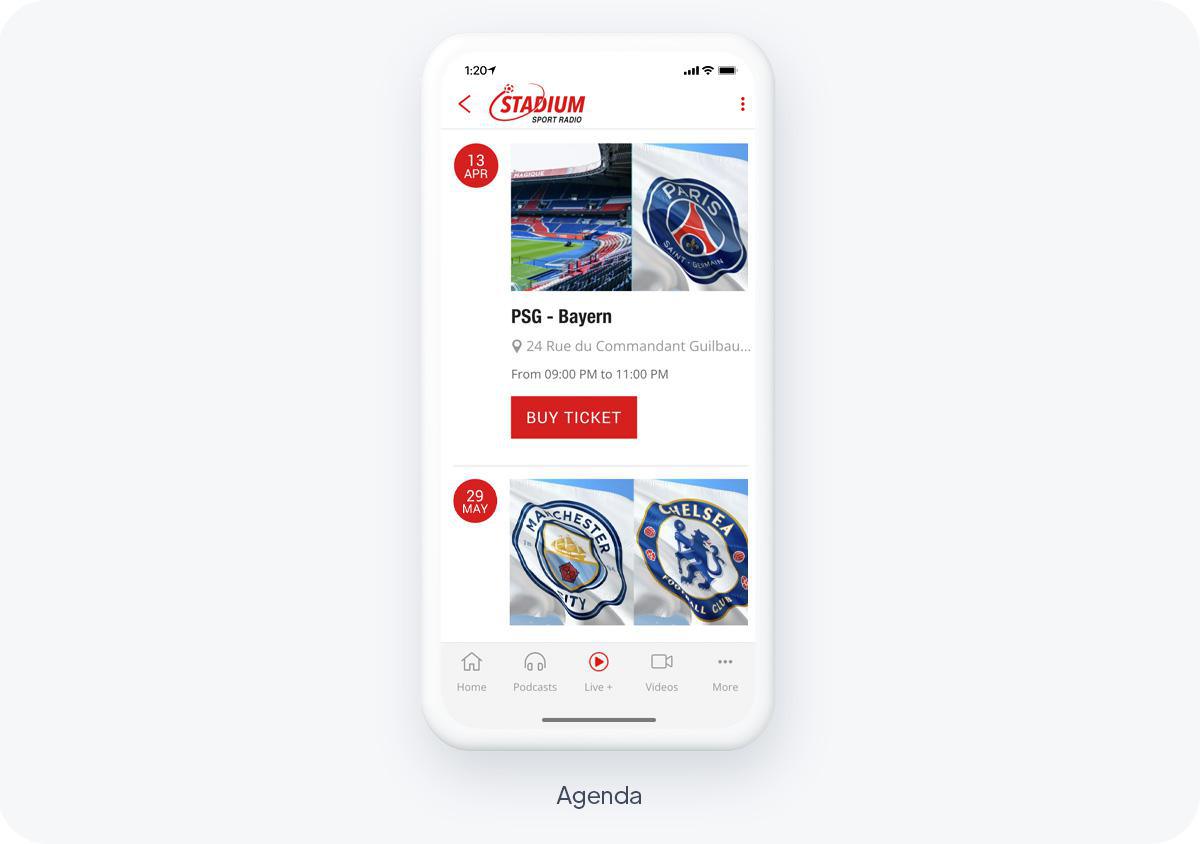 L'app de radio Stadium sert une radio spécialisée dans le sport. Elle est donc destinée à un public averti qui vient chercher des informations précises sur un thème qui l'intéresse déjà. Son objectif numéro 1 est donc de fédérer autour d'une passion commune et de se positionner comme référence dans ce domaine.