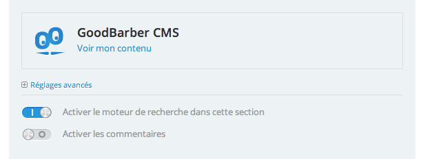 ⚠ Vous avez aussi la possibilité de gérer les "réglages avancés" en activant le moteur de recherche et/ou les commentaires dans votre section via cette page.
