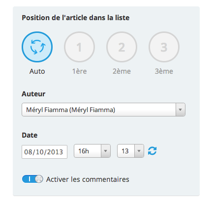 Vous avez aussi la possibilité de positionner votre article en 1ère, 2nd ou 3ème position si vous le souhaitez, ou bien de laisser GoodBarber le gérer automatiquement ;)