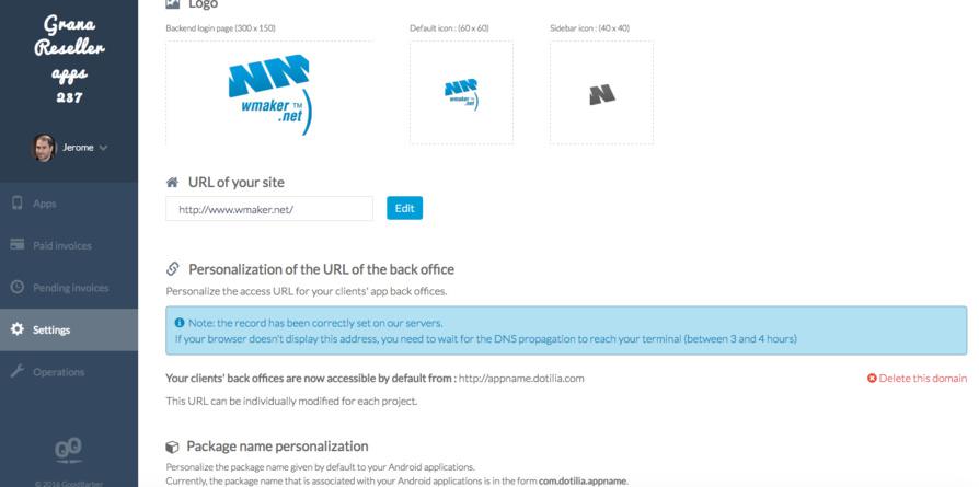 Vous pouvez aussi remplacer le nom de domaine GoodBarber par celui de votre choix, de sorte à ce que vos clients et membres accèdent à leur back office grâce à une URL brandée : www.monapp.monagence.com