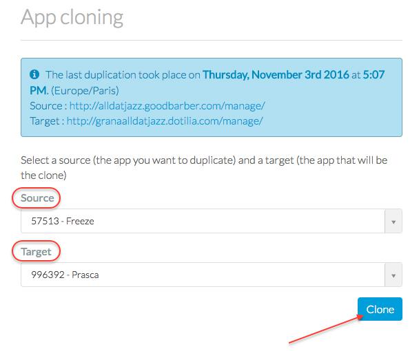 Un outil de duplication d'app est aussi accessible, depuis l'onglet Opérations. Une fonctionnalité additionnelle à laquelle vous pouvez souscrire dans le cadre de votre offre Reseller.