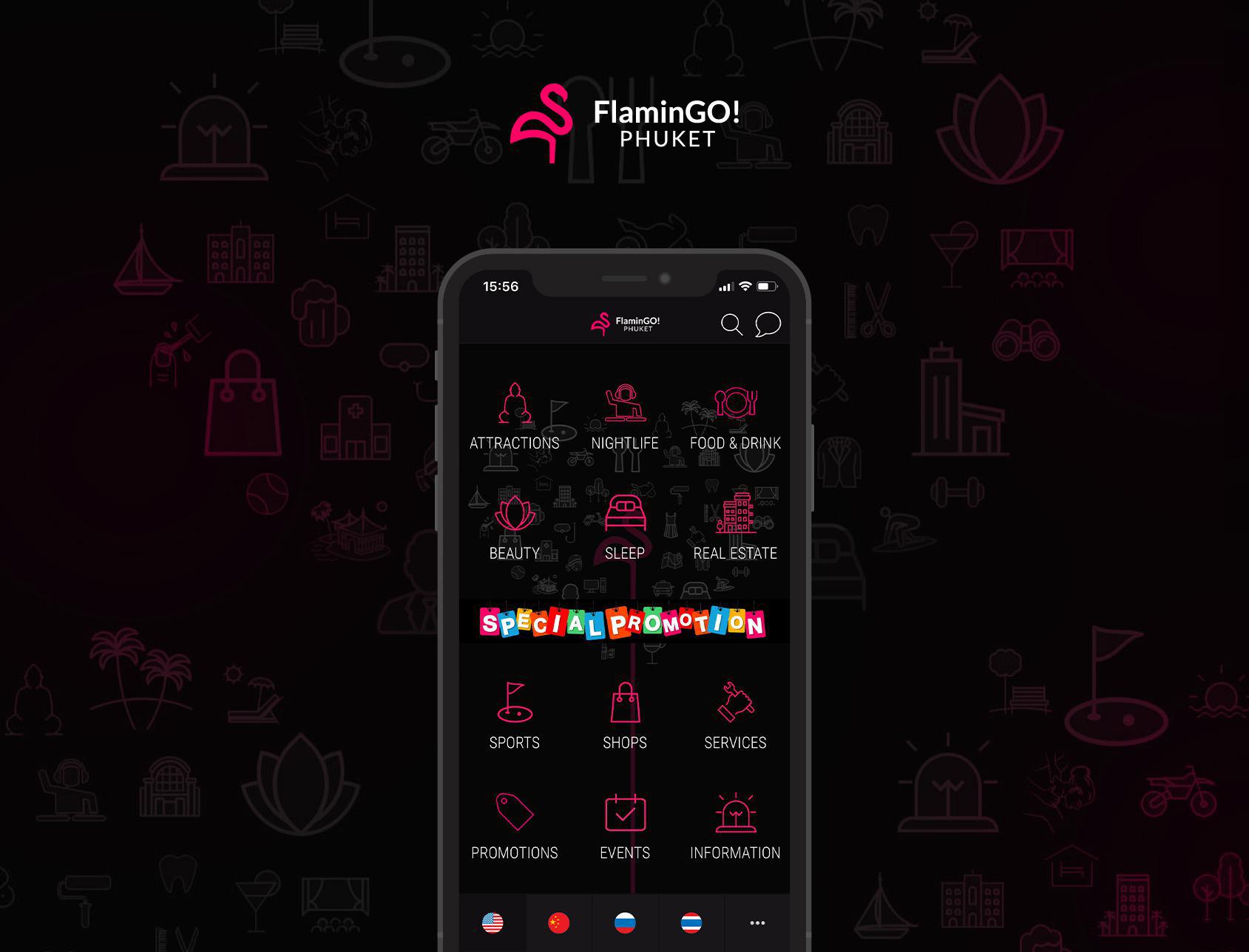 "FlaminGO! vous tient informé de tout ce qui se passe à Phuket et dans les environs à toute heure du jour et de la nuit, que vous soyez un touriste, un expatrié ou un local, que vous recherchiez un hébergement agréable, des restaurants, des boutiques, une vie nocturne, des sites à visiter, des activités sportives activités, immobilier, santé et beauté et bien plus encore - cette application combine tout!”