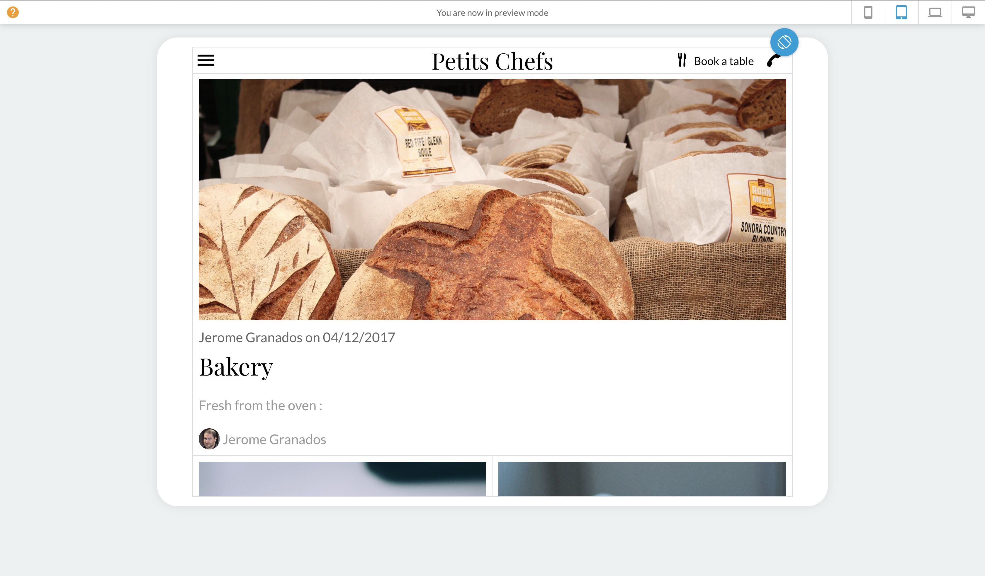 Nous avons construit une nouvelle façon de consulter la preview de l'app. Dans le backoffice, le retour visuel a été conservé, mais uniquement au format smartphone. Cela permet de ne pas surcharger visuellement l'interface. Ce n'est que lorsque vous cliquez sur le lien preview (en haut à droite) que vous pouvez pré-visualiser votre app dans tous les formats disponibles : mobile, tablette et desktop.