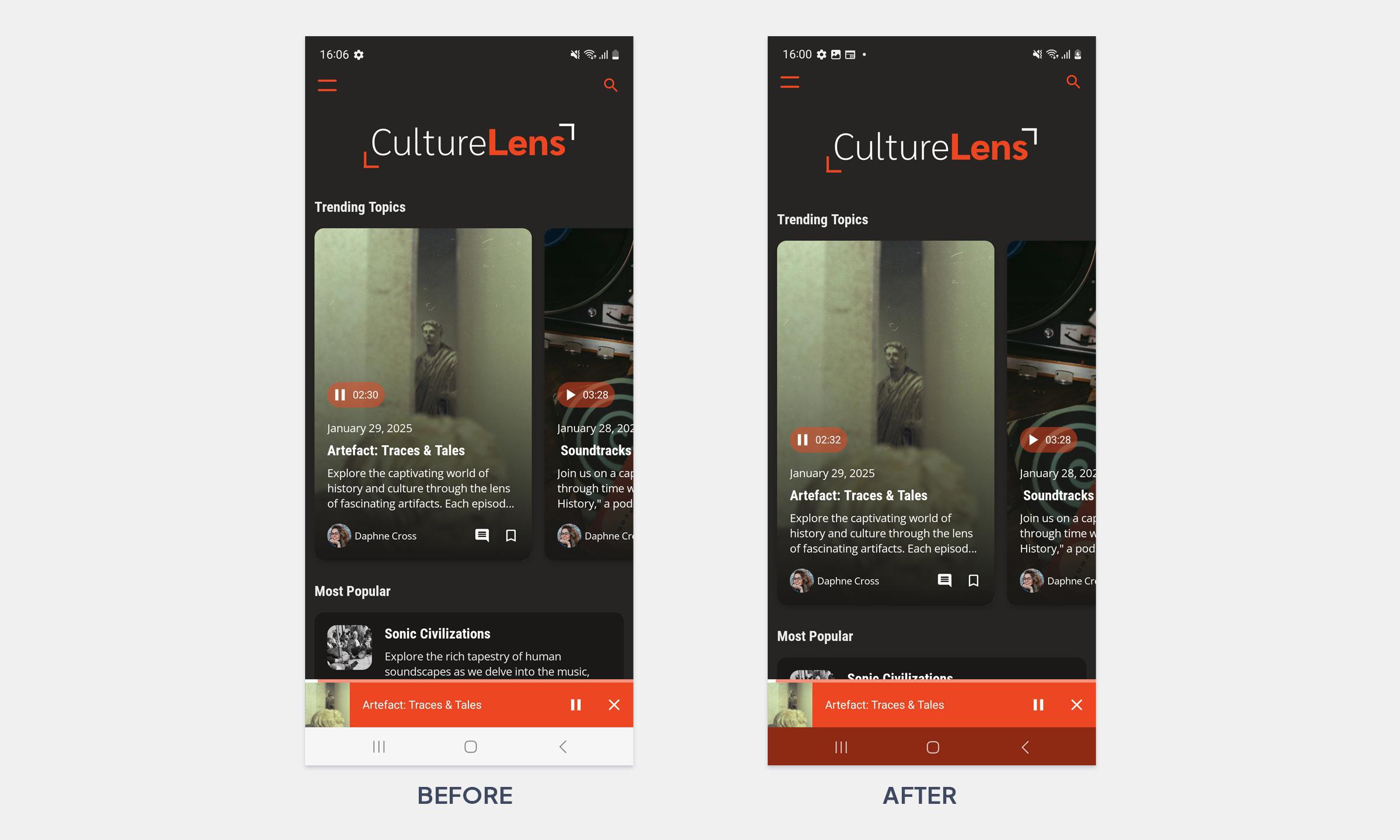 Désormais, votre contenu occupe davantage d’espace sur l’écran, et notre équipe a ajusté chaque élément de GoodBarber en conséquence, en prenant en compte le Mini Player, la bannière publicitaire et le style de votre en-tête (header).