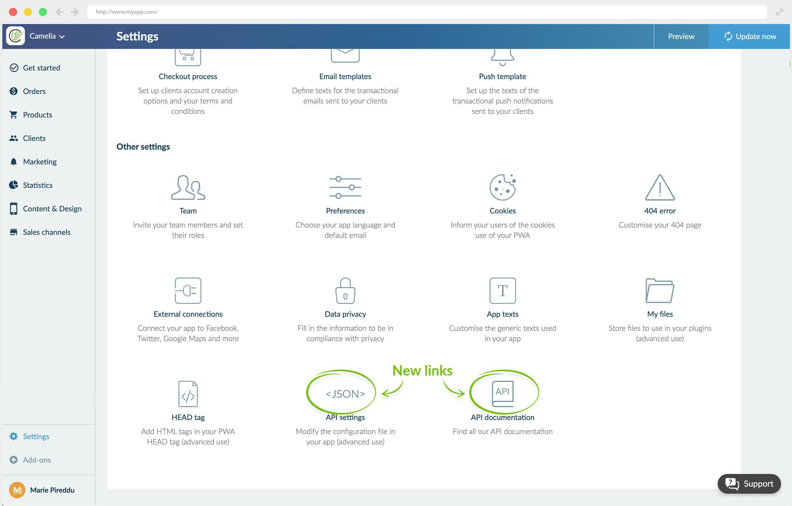 Avec l'add-on JSON, vous pouvez accéder aux paramètres masqués et personnaliser encore plus votre application.