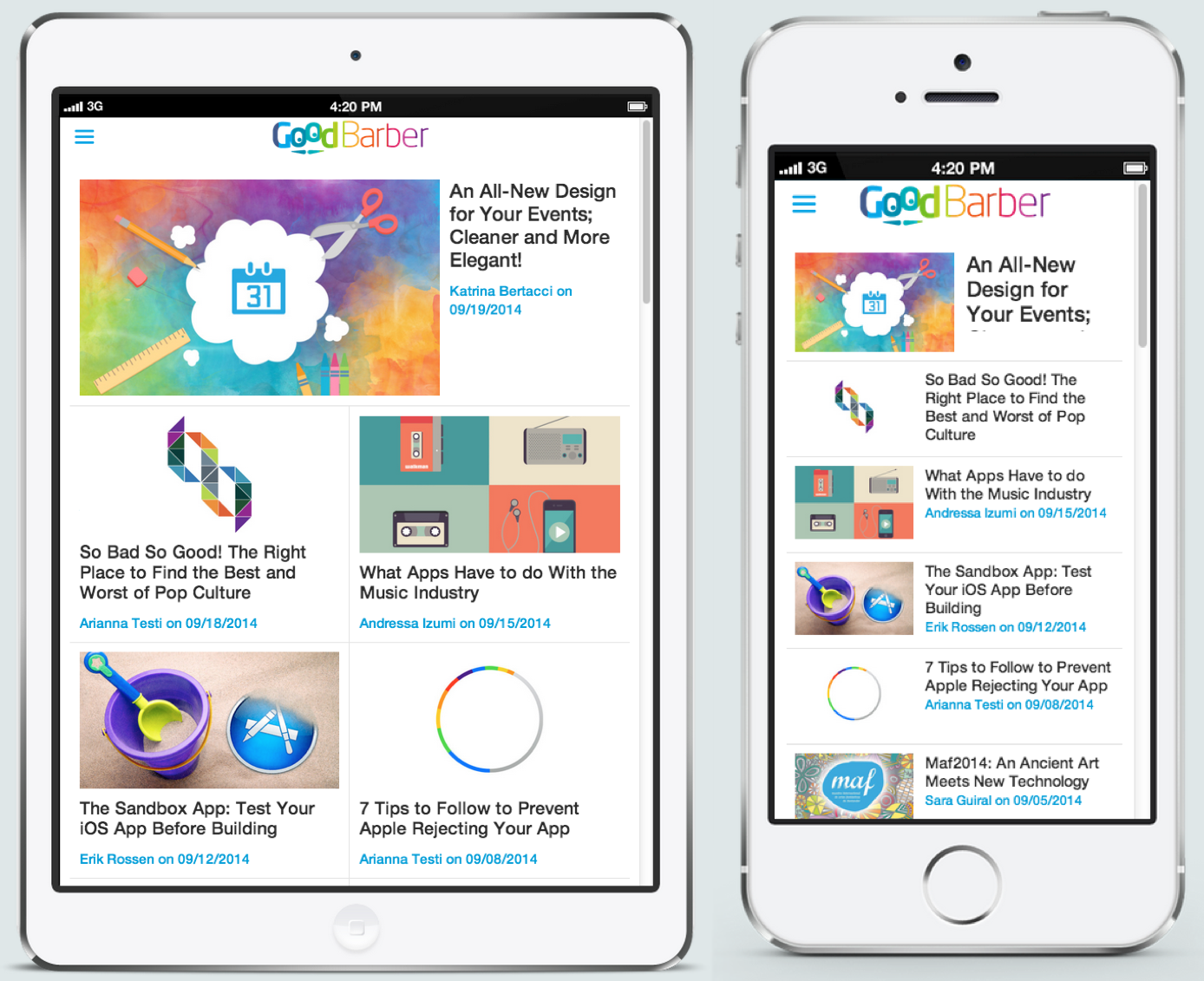 Malgré leur similarité conceptuelle, les différentes tailles d'écrans impliquent qu'il serait contraire à l'esprit de ces appareils d'afficher simplement une version agrandie d'une application iPhone. C'est pourquoi il était prioritaire pour nous d'étendre les capacités de GoodBarber vers des applications spécifiques à l'iPad pour la troisième version.