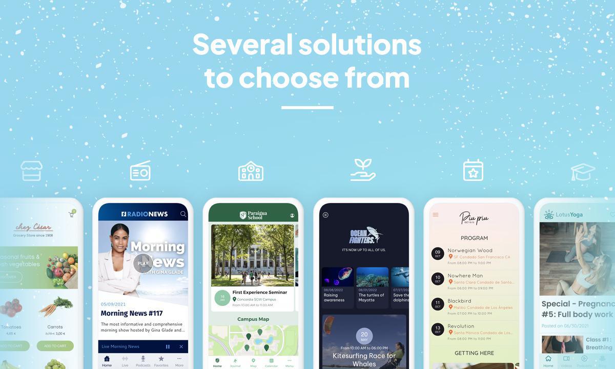 La dernière amélioration du site web porte sur le process de création de votre app. Il vous assure de commencer avec le bon modèle et les fonctionnalités incontournables adaptés à votre activité.