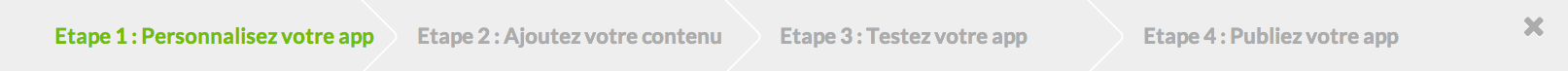 C'est pourquoi nous avons décidé d'afficher un fil d'Ariane en haut de l'écran qui indique les quatre étapes à suivre pour créer une application GoodBarber: