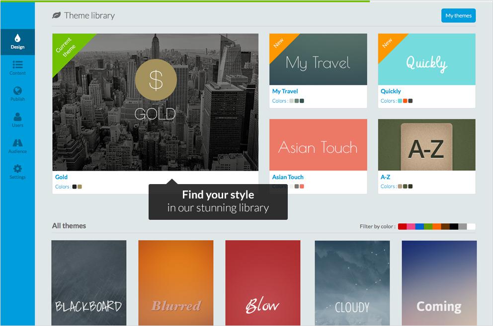 C'est pourquoi un thème est attribué, au hasard, à chaque nouvelle application GoodBarber. Ensuite, l'utilisateur peut évidemment choisir son préféré parmi les 50 thèmes proposés, qui peuvent tous être personnalisés à 100%.