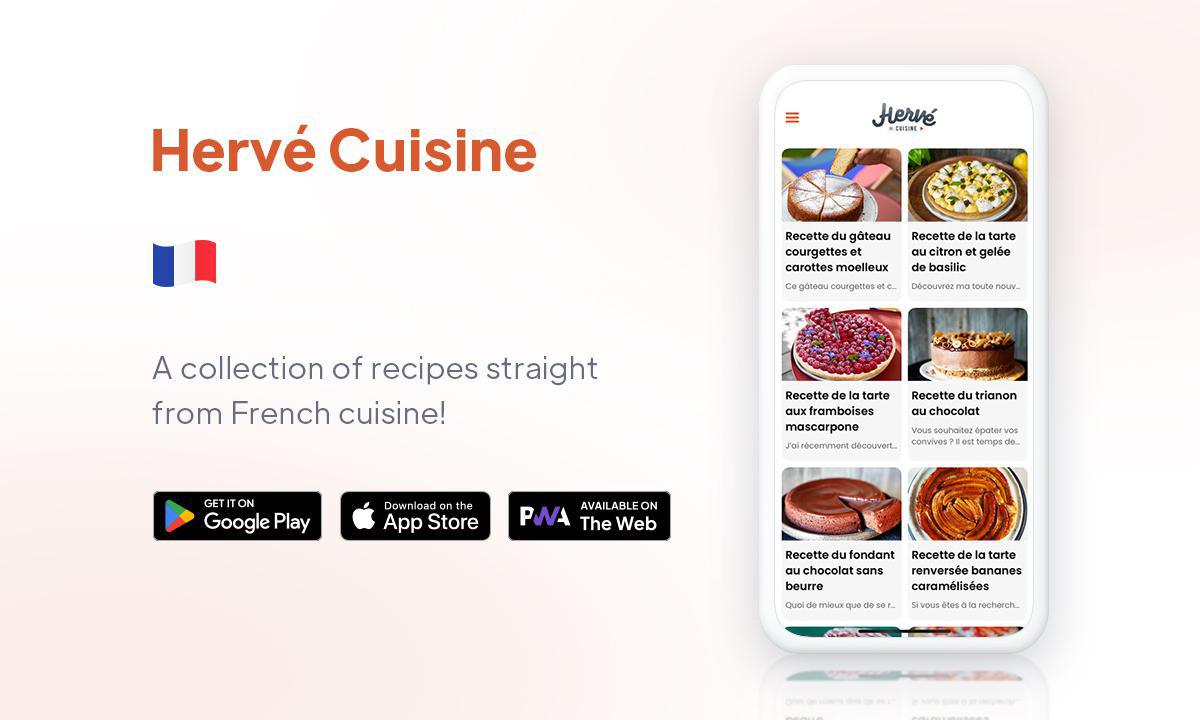 Découvrez Hervé Cuisine sur le Web ou téléchargez l'application sur les app stores (App Store - Google Play).