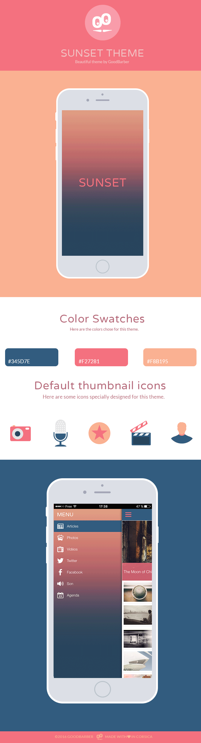 Par ailleurs, en tant que Reseller, vous serez peut-être tenté d'appliquer et d'utiliser les versions proposées par Sunset dans le cadre d’un projet pour un dossier client. On le disait plus haut, les tonalités zen peuvent très bien se prêter, par exemple, à une app qui a pour objet l’univers du bien-être ou de la santé. Au final, c’est à vous de trouver l’équilibre subtil entre votre identité (votre logo par exemple), le marché dans lequel vous évoluez (vos concurrents) et la tendance du moment.