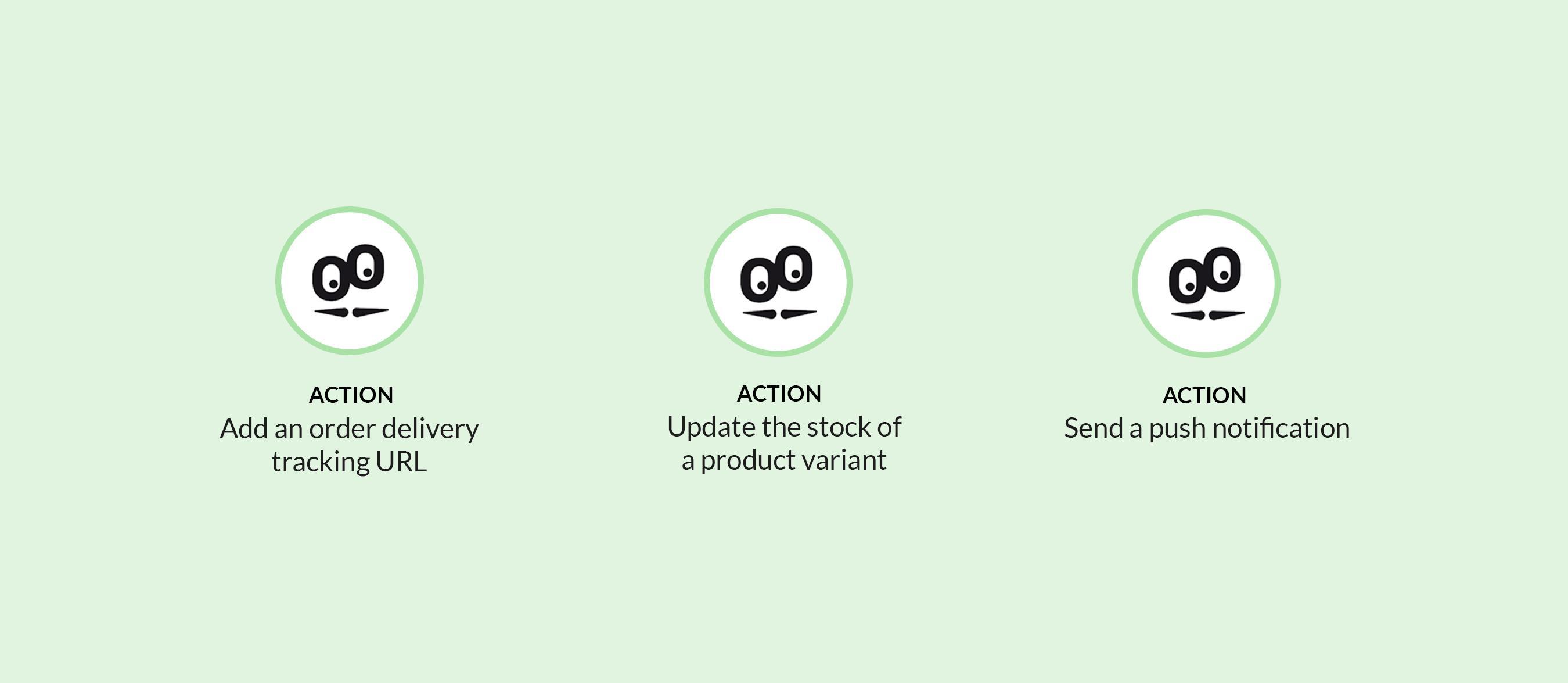 L'action est un autre module. Elle correspond à toutes les étapes d'un scénario. Vous pouvez, par exemple, créer un scénario qui met à jour le stock d'un produit lorsqu'une ligne est ajoutée dans un tableau Google Sheet.