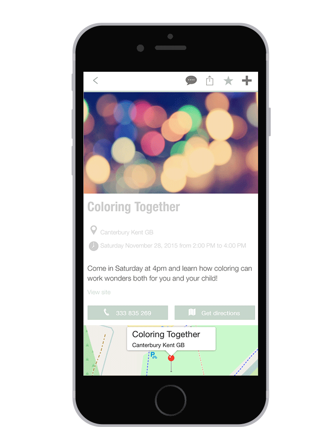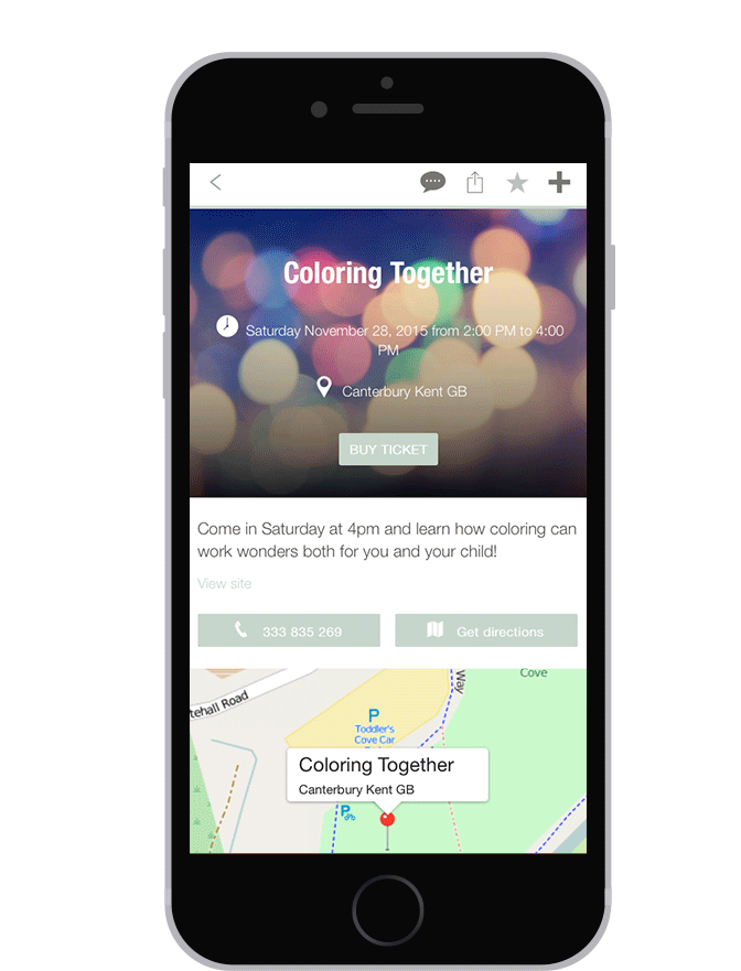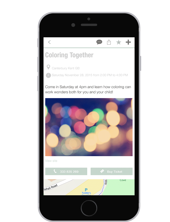La dernière petite nouveauté est une mise à jour de la ToolBar. Désormais les évènements peuvent être partagés et mis en favoris par les utilisateurs!