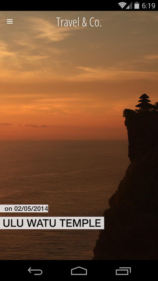 Imaginez que vous êtes une agence de voyages et que votre app met en avant les voyages que vous organisez. Au lieu d'afficher une liste insipide de destinations, vous préfèreriez plutôt utiliser de belles images. Pas vrai ? Minimal photo est le template idéal pour atteindre ce but.