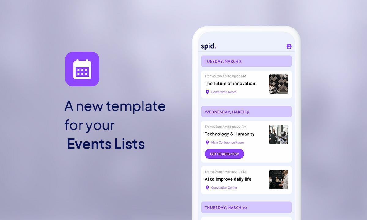 Jusqu'à présent, un seul template était proposé pour afficher vos événements. Vous aurez le choix avec ce tout nouveau modèle qui offre une perspective moderne et élégante pour présenter les événements à venir.