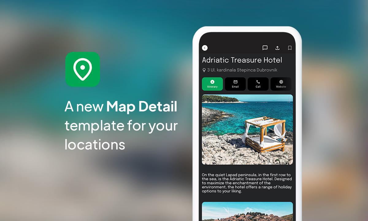 C'est avec une grande excitation que nous vous présentons aujourd'hui notre tout nouveau template de vue de détails pour la section Carte : le Template ToolBar Up Classic. Moderne, élégant et intuitif, il redéfinit la manière dont vous pouvez présenter les détails des lieux dans votre application.