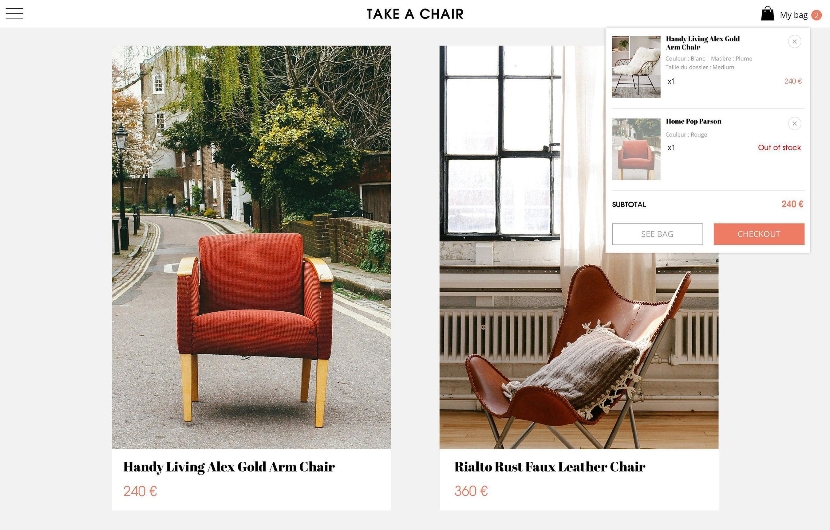 Depuis un ordinateur, les clients visualisent le contenu de leur panier d’un simple survol de souris. De plus, la popup se déploie automatiquement lorsqu’ils reviennent dans la boutique, et que le panier contient des articles d’une visite précédente.