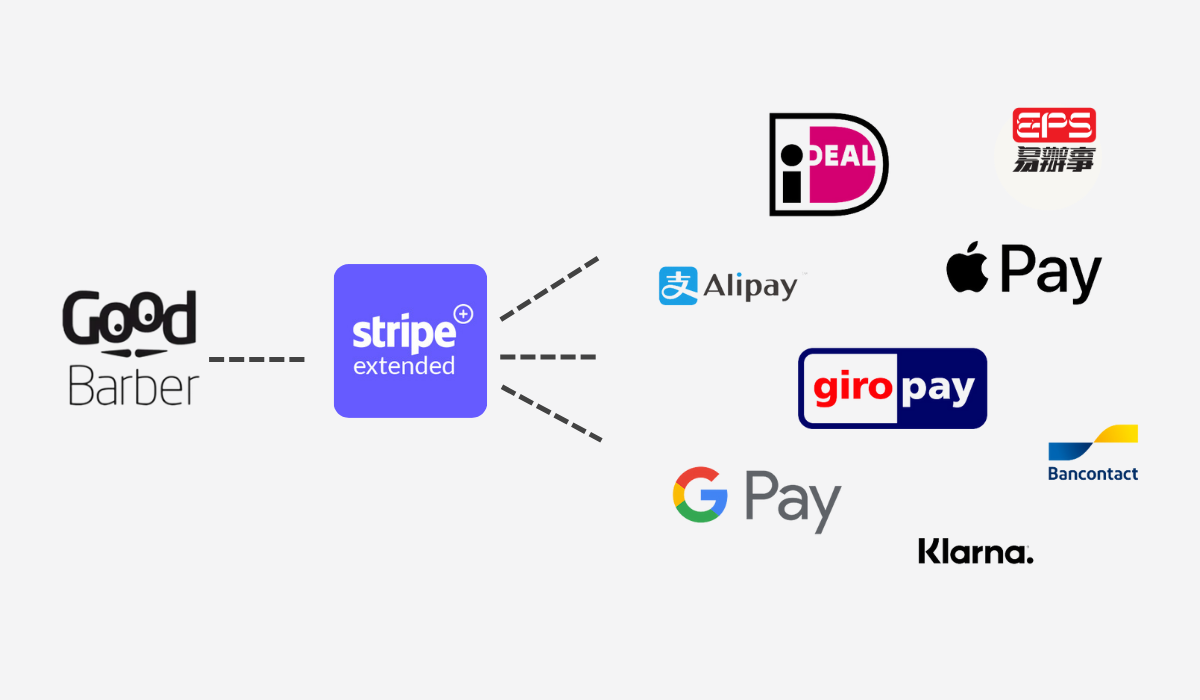 Nous avons maintenant étendu cette fonctionnalité. Stripe Extended vous permet d'utiliser 7 nouvelles méthodes de paiement :