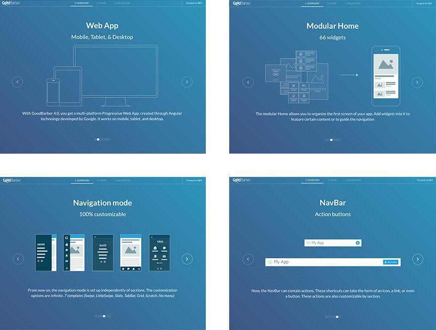 Le système de migration démarre par une présentation détaillée des nouveautés auxquelles vous aurez accès une fois passé à GoodBarber 4.0. En plus d'une introduction au nouveau back office, vous y trouverez des explications sur le développement de la Home modulaire , la nouvelle gestion de Modes de Navigation et de la NavBar, et évidemment les Progressive Web Apps , nouveauté majeure de GoodBarber 4.0.