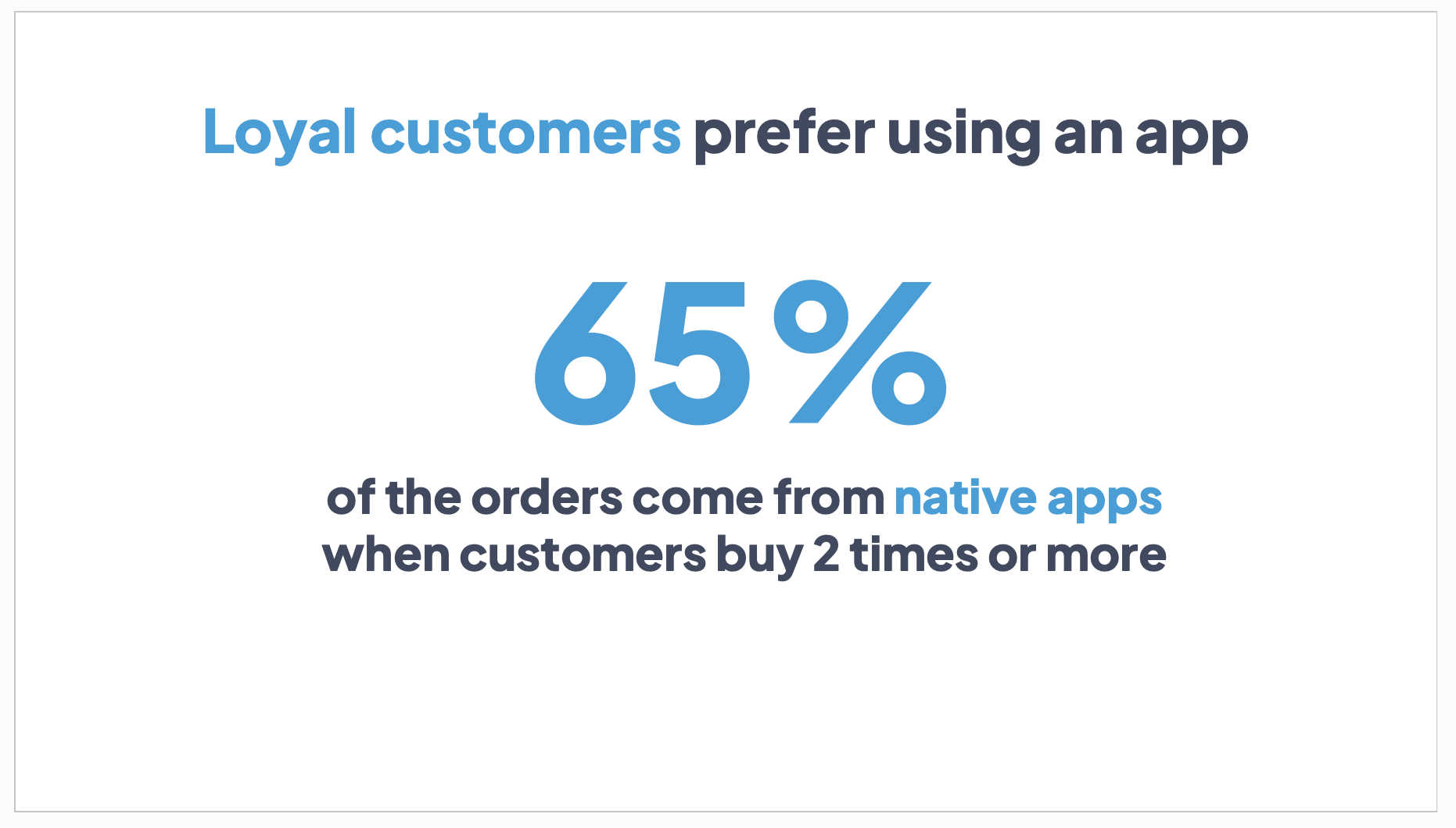 En outre, notre étude révèle également que les clients qui vont sont fidèles préfèrent utiliser la version native de votre app. Nous avons identifié que 65% des clients qui réalisent au moins 2 achats dans un commerce en ligne créé avec GoodBarber effectuent leurs achats depuis l’application native iOS ou Android.
