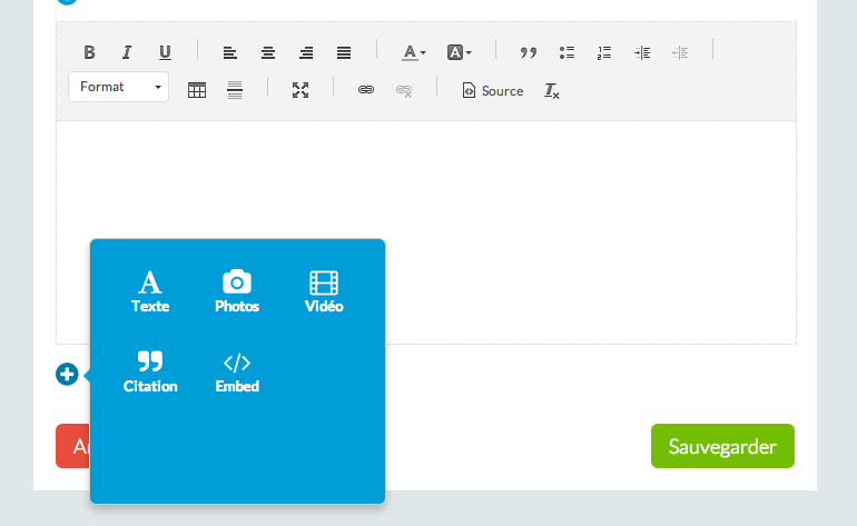 La nouvelle interface ne vous oblige pas à ajouter du code HTML; maintenant c'est similaire à une section CMS, cela vous permet d'ajouter une description personnelle, mais aussi une description de votre projet comme si vous écriviez un article. Vous pouvez aussi ajouter des photos, vidéos, citations... Cela de façon très intuitive, maintenant.