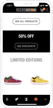 Quand vous créez une app de Shop pour un client, après avoir intégré les produits, votre prochaine tâche sera de penser à l’architecture globale de l’app et à son ergonomie. Grâce à la modularité de la Home page et à ses widgets, il vous sera facile de trouver la meilleure mise en page pour votre client. L’add-on “Achat Express ” vous aide dans cette mission car il allie design et augmentation des ventes. En effet, les e-Shoppers pourront ajouter des produits dans leur panier sans avoir à entrer dans le détail de la fiche produit, directement depuis la page d'accueil de l’app. L’expérience utilisateur est plus fluide car cela limite l’effort (nombre de clics) pour passer à l’achat, et encore une fois, cela augmente le taux de conversion.