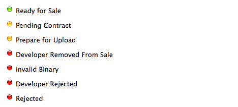 Concernant le statut de l'application : lorsque le vendeur demande le transfert de l'application, elle peut afficher n'importe lequel des statuts figurant dans la liste ci-dessous, pourvu qu'elle ait déjà été publiée sur l'App Store au moins une fois auparavant: