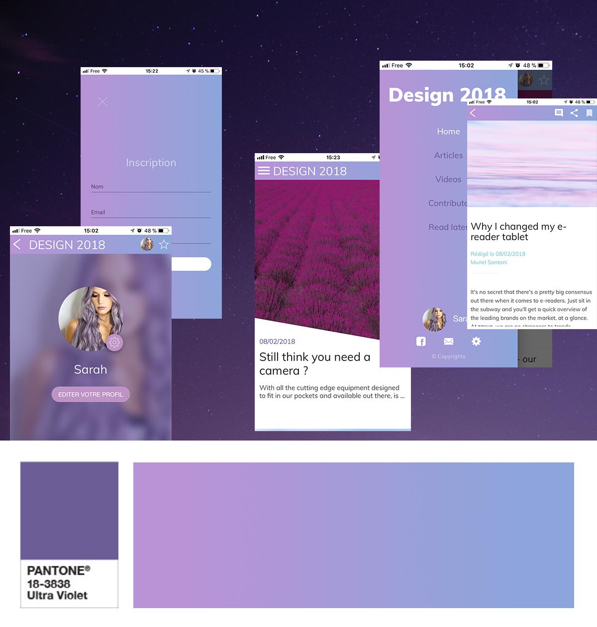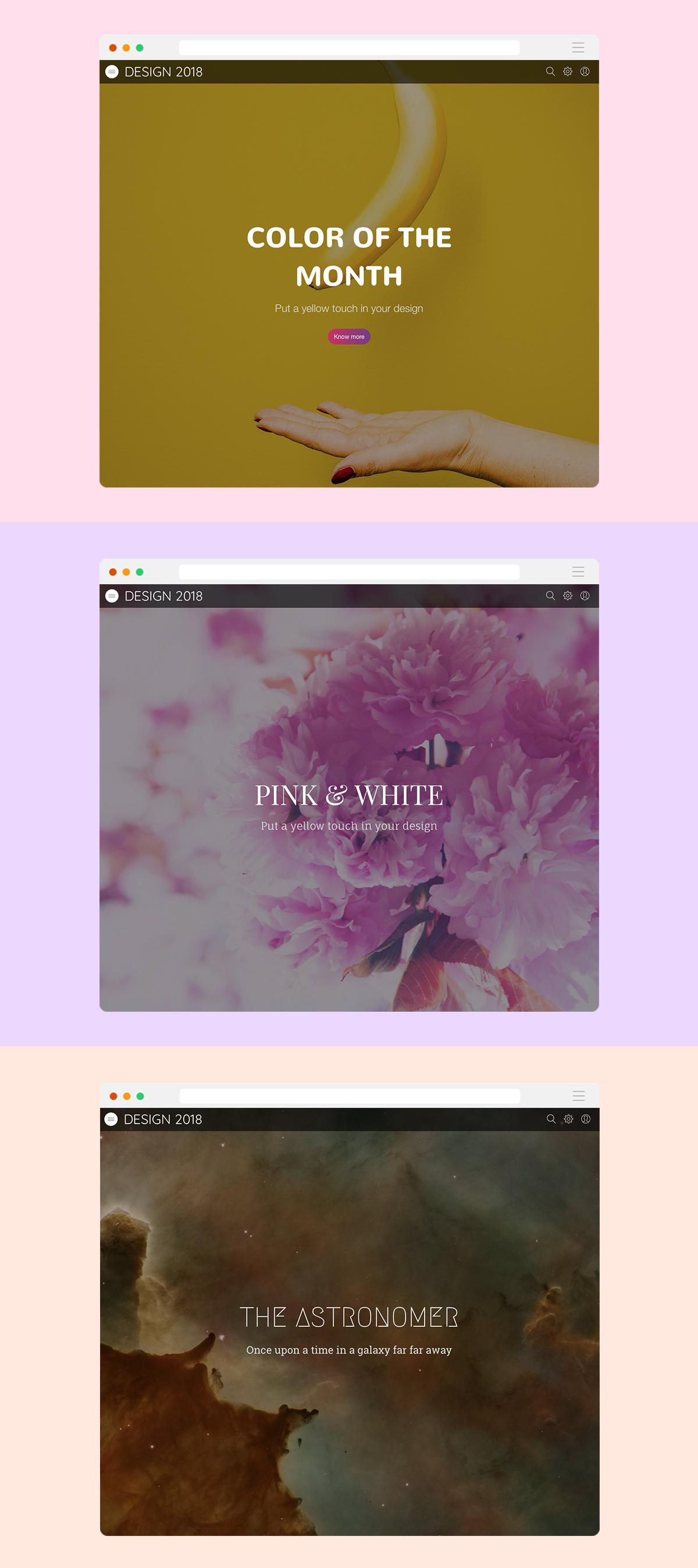 Si vous ne vous sentez pas totalement prêts à intégrer ce type de couleurs, la deuxième grande tendance en terme de couleurs devraient vous ravir : les dégradés . Appliqués en arrière plans, en filtre sur vos visuels, ou encore dans vos modes de navigations, les dégradés apporteront la juste dose de couleur pour créer un design minimaliste mais réussi.