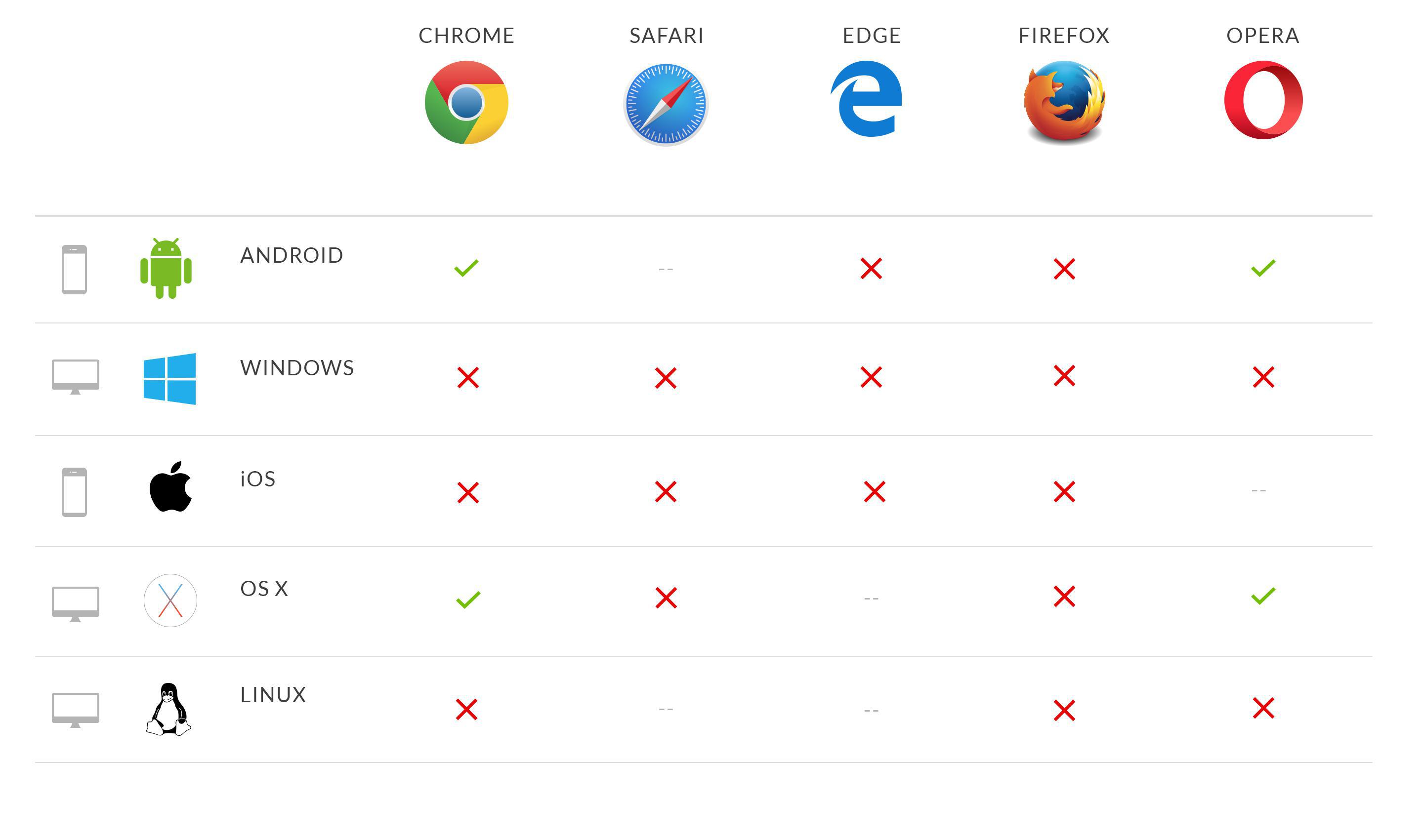 Compatibilité des navigateurs avec les Notifications Push