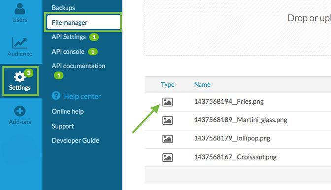 Ensuite, il faut vous rendre dans le menu Settings > Développeurs > Mes Fichiers et importer vos magnifiques icônes pleines de couleurs dans le Back Office GoodBarber.