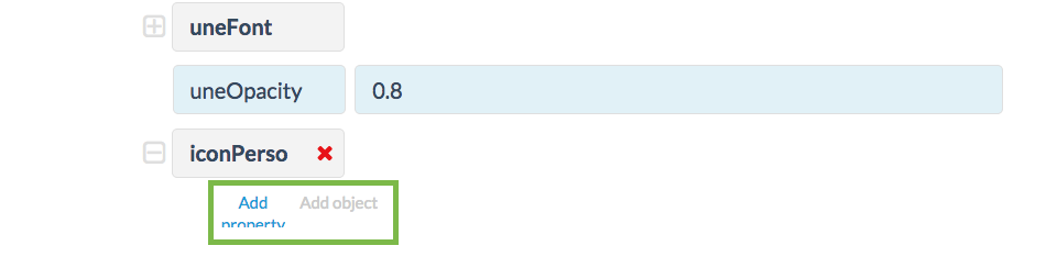 Attention: les boutons Add Property et Add Object relatifs à l'objet iconPerso seront un petit peu décalés vers la droite.