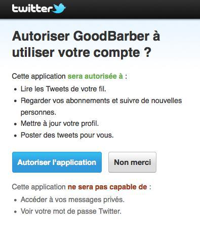 Vous renseignez votre username Twitter. Il n'est pas nécessaire de fournir le mot de passe, car GoodBarber importe un flux RSS.