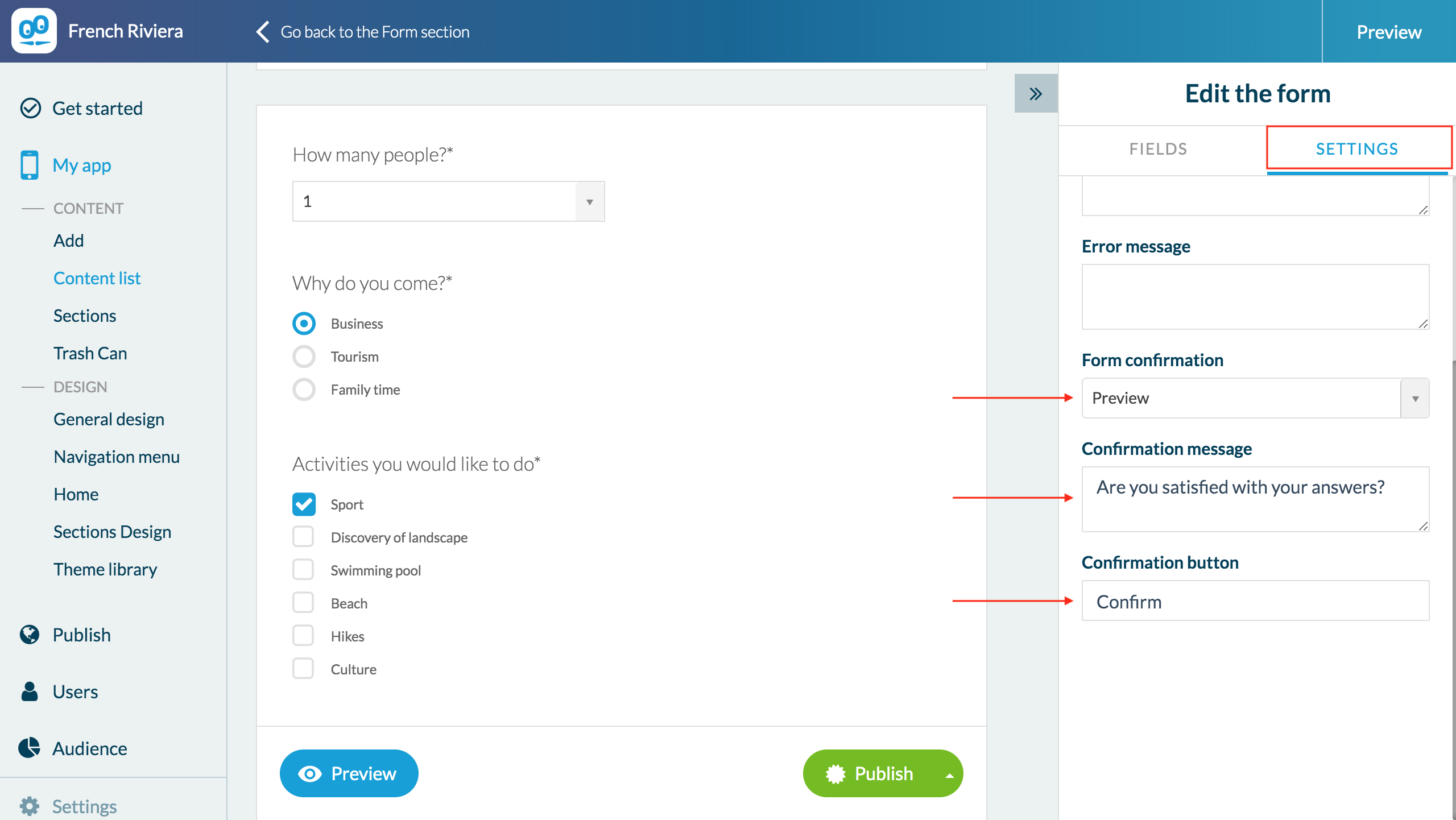 Pour les paramétrer, rendez vous dans le menu Mon app > Contenu > Formulaire > Modifier le formulaire.