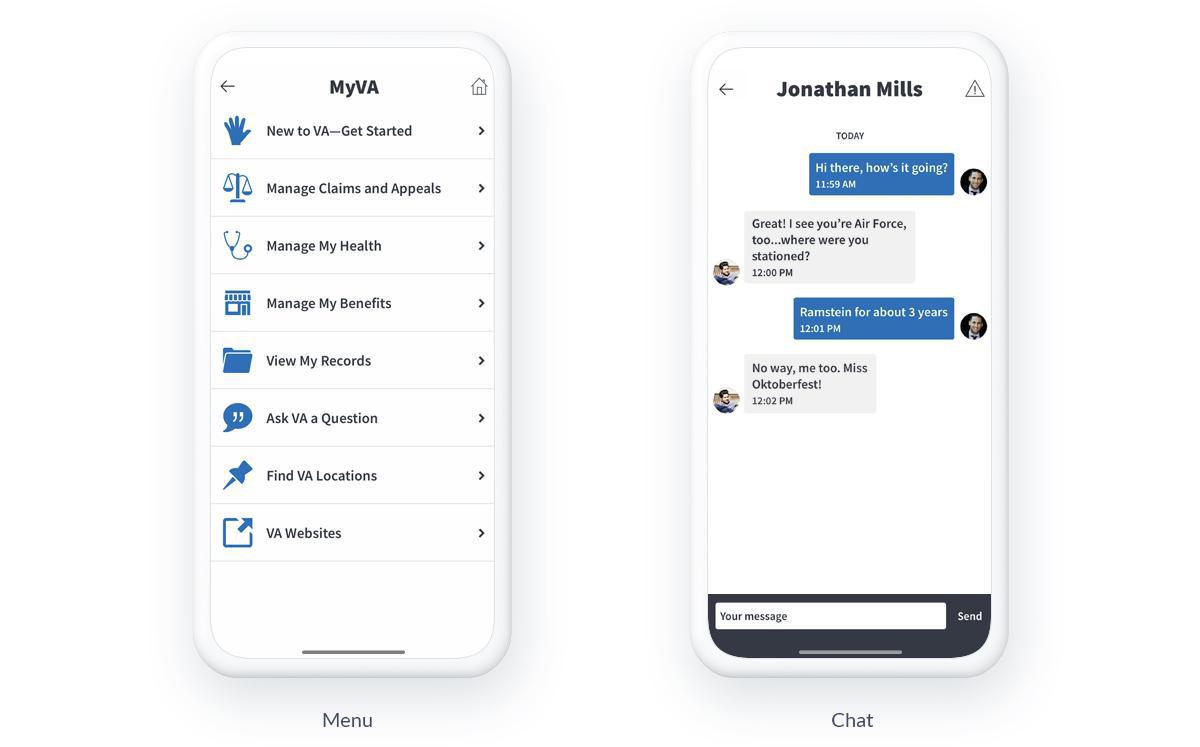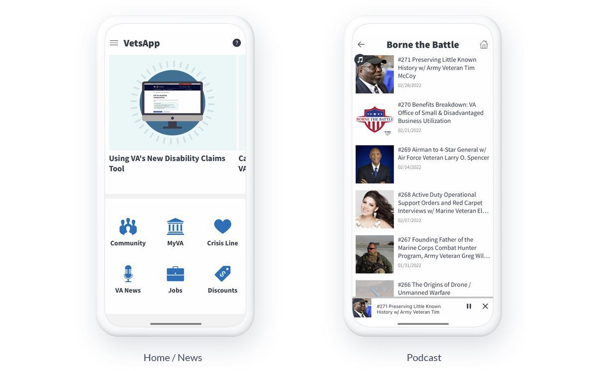 VetsApp est une application créée en 2018 par Jonathan Mills. L’app met en relation les anciens combattants américains avec l’US Veterans Association, en réunissant ses différents avantages et services en un seul endroit pratique, cela évite ainsi de devoir faire une recherche sur le volumineux site officiel de l’association. L’app n'est pas affiliée à l'Association des Vétérans américains, mais offre un accès sécurisé et simplifié aux services de celle-ci. Via la redirection vers le site Web officiel, l'application permet aux utilisateurs d'accéder entre autres aux dossiers médicaux, aux dossiers de service, de prendre des rendez-vous médicaux, de trouver des installations VA locales, de lire les dernières nouvelles concernant les anciens combattants et de se connecter avec d'autres vétérans dans le même domaine. Jonathan a intégré une fonctionnalité unique à son application qui n’est autre qu’une calculatrice, permettant aux vétérans eux-mêmes de calculer facilement leurs droits aux prestations. L'application compte jusqu'à présent 100 000 téléchargements, avec 30 000 utilisateurs enregistrés pouvant se connecter les uns aux autres. VetsApp peut également être utilisée sans inscription : cependant, cela ne permet pas l’accès aux services de messagerie entre vétérans.