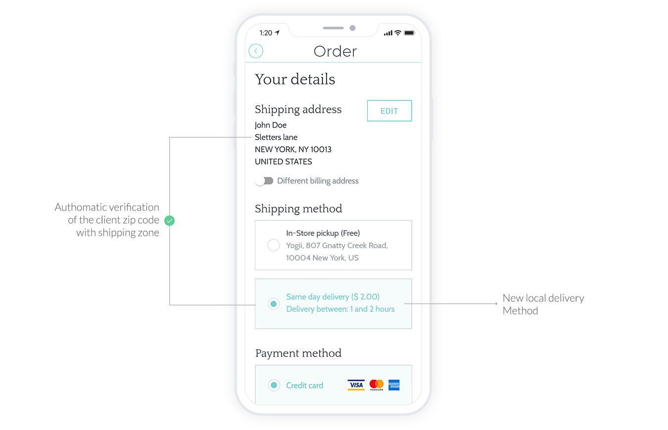 Avec la livraison locale, vous pouvez configurer vos zones de livraison par code postal et offrir une livraison rapide à votre clientèle plus proche.