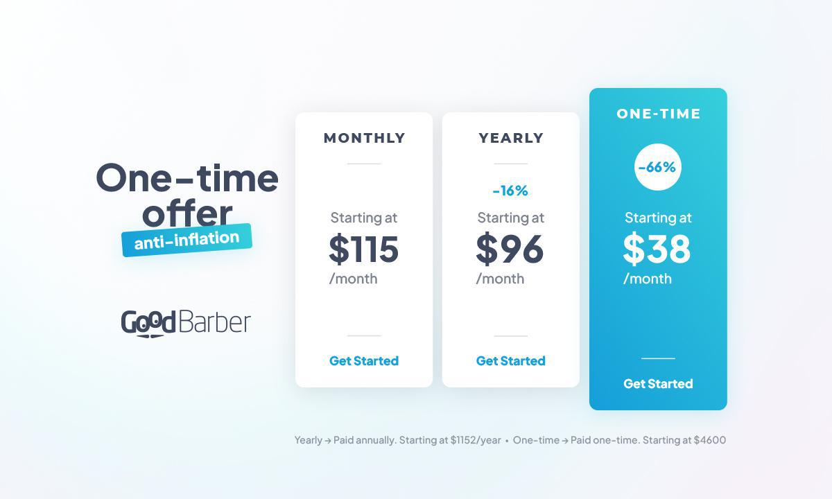 L'offre à vie est disponible dès maintenant sur notre site web > page Tarifs > voir les détails de chaque catégorie (Contenu, eCommerce, et Revendeur). Vous pouvez acheter notre offre unique GoodBarber's par virement bancaire ou par prélèvement automatique.