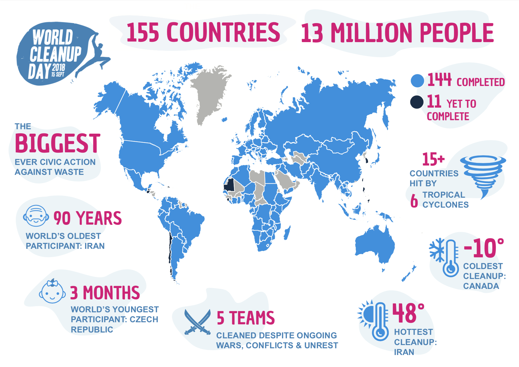 Nous vivons dans un monde qui croule littéralement sous les déchets. Chaque année la population mondiale génère près de 4 milliards de tonnes de déchets de différentes sortes. Le mouvement citoyen du World Cleanup Day est né en Estonie en 2008. Son objectif est de fédérer l’ensemble de la société autour d’un projet commun : Nettoyer la planète de ses déchets sauvages en 1 jour.
